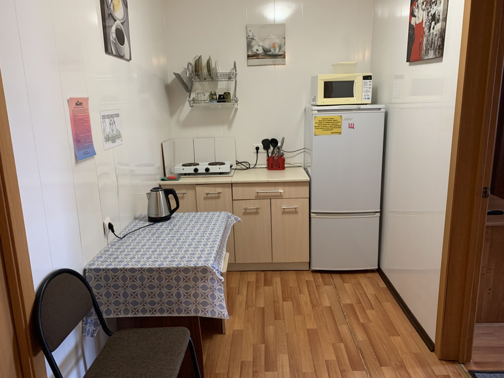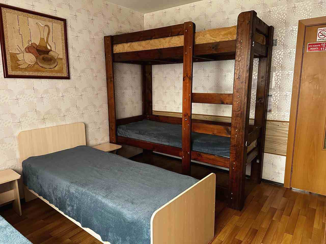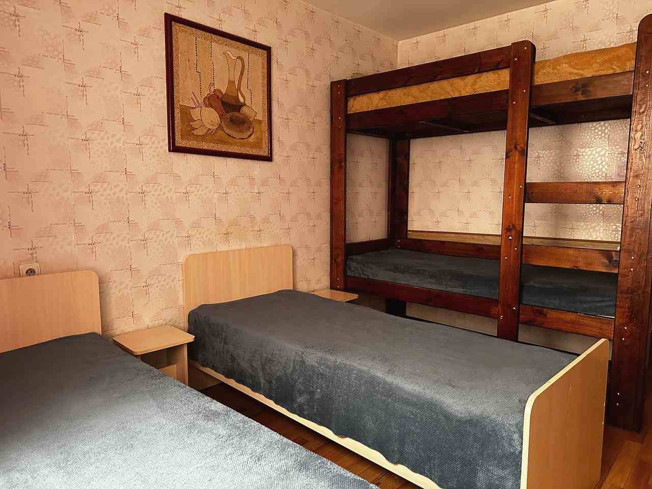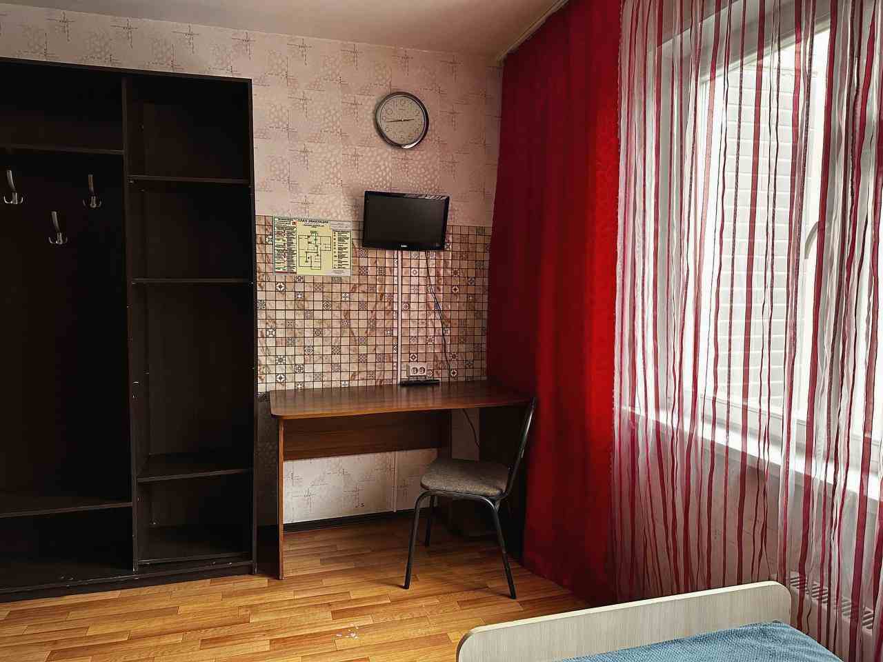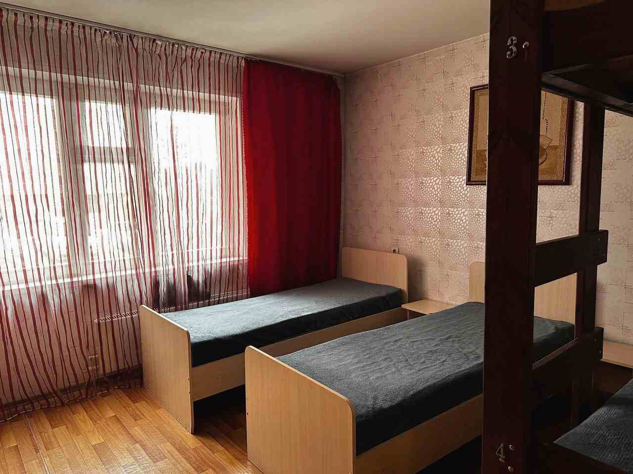 Комната вмещает в себя четверых человек. В ней есть все для отдыха и проживания: кровать, тумба, рабочий стол, телевизор и шкаф для вещей. Предоставляется гостевой Wi-Fi. В самом хостеле имеется санузел с душем, а также кухня со всем необходимым для готовки.